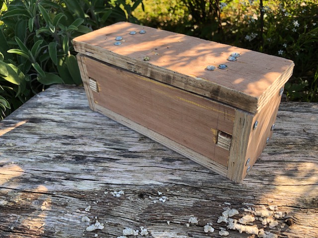 Approchez vous, j'ai dit ! N'ayez pas peur ! Il faut bien qu'on la trouve cette balise ... Oh, une boîte !! Vite, ouvrons là !!! Mouais, plus facile à dire qu'à faire ?! Pas de serrure, pas de gond, il y a bien des vis un peu partout, mais elles sont nombreuses. Il y a aussi 2 morceaux de bois qui bougent un peu de chaque côté, mais impossible de les enlever ! Je ne vois pas 36 solutions : a) bourriner en tirant très fort dans tous les sens, b) essayer de dévisser toutes les vis au couteau suisse, c) actionner simultanément les 2 bouts de bois, d) jeter la boite par terre, en grognant, e) faire demi-tour et rentrer au local en laissant là cette satanée boîte. Vous choisissez quoi ? |